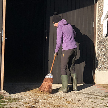 Ulkotarhat siivotaan aamuisin ennen hevosten ulosvientiä.