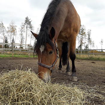 Hevosten heinät mitataan 2kg annoksiin Ikean pusseihin. Vaaka auttaa oikean määrän arvioimisessa.