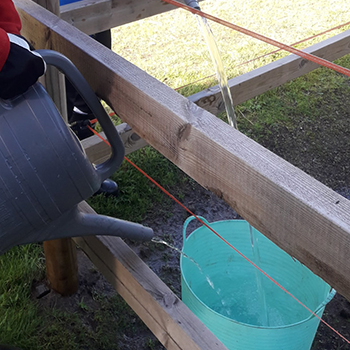 Hevosilla täytyy aina olla raikasta vettä saatavilla. Vedet kuljetetaan kastelukannuilla.
